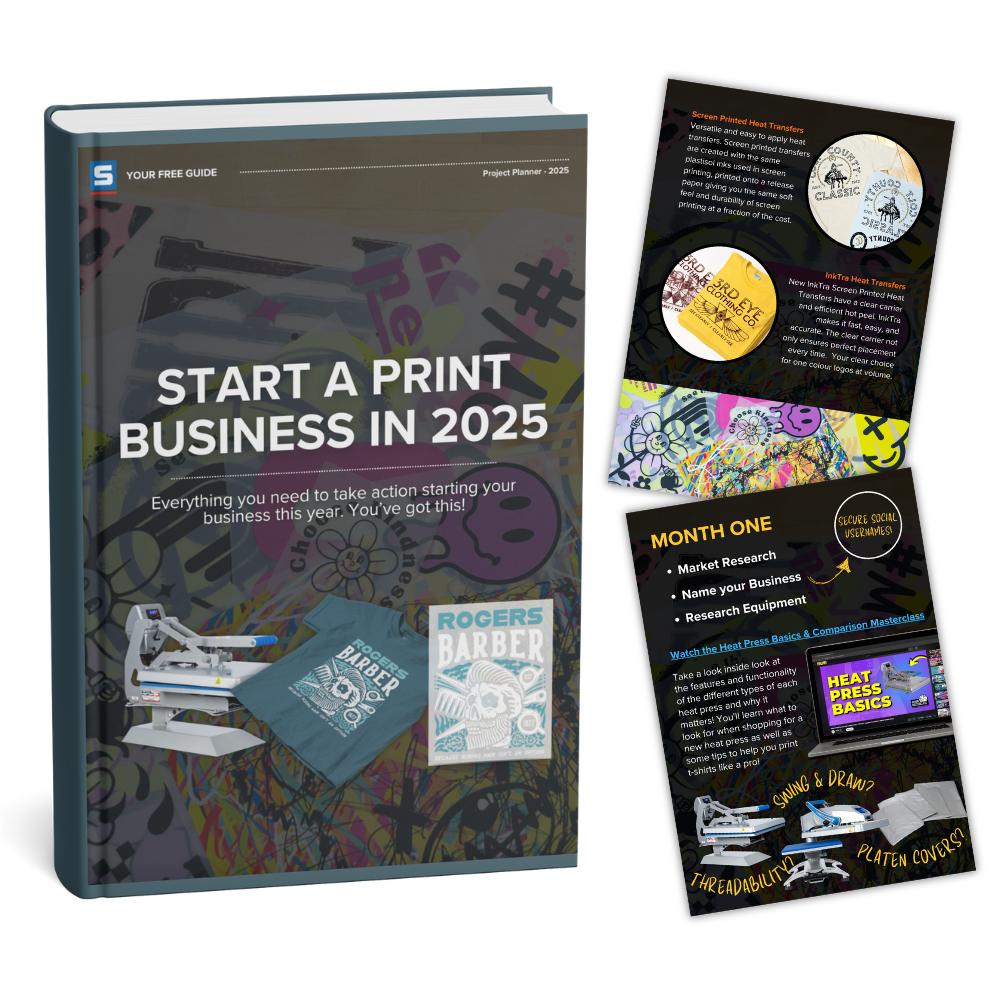 A Heat Press is a machine that applies your custom design in the form of a heat transfer to a range of garments and accessories including t-shirts, jerseys, sweatshirts, bags, caps and more, allowing you to create your own products.
