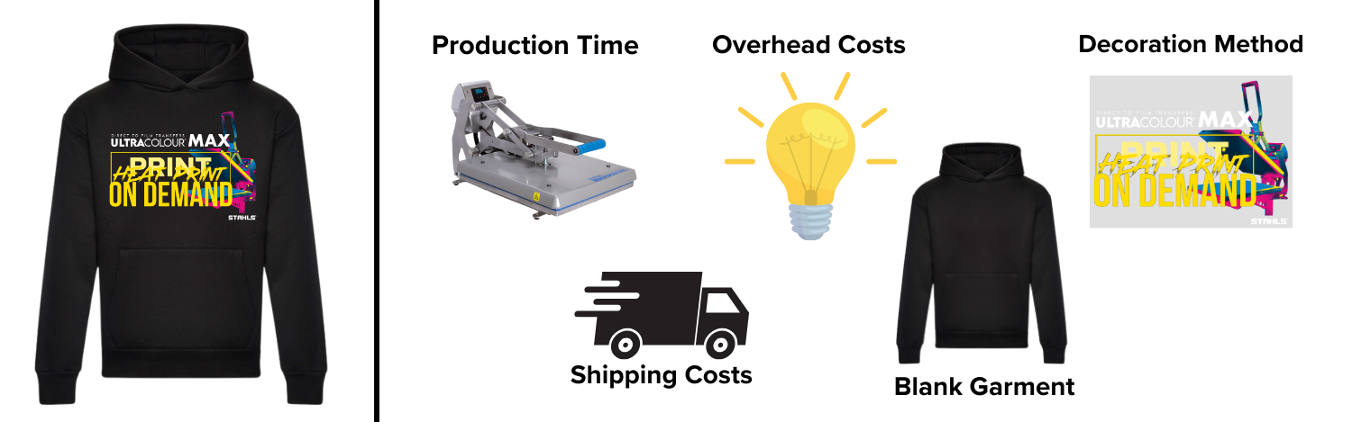 Don't forget to pay yourself! Consider the time you're spending completing that order. From customer communications through to the physical heat printing, your time needs to be factored into the price of the product.
